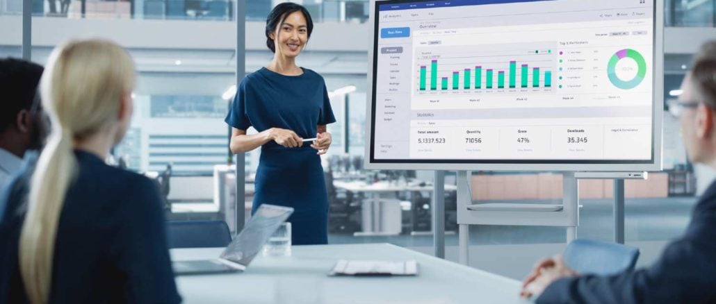 Mulher fazendo apresentação a investidores