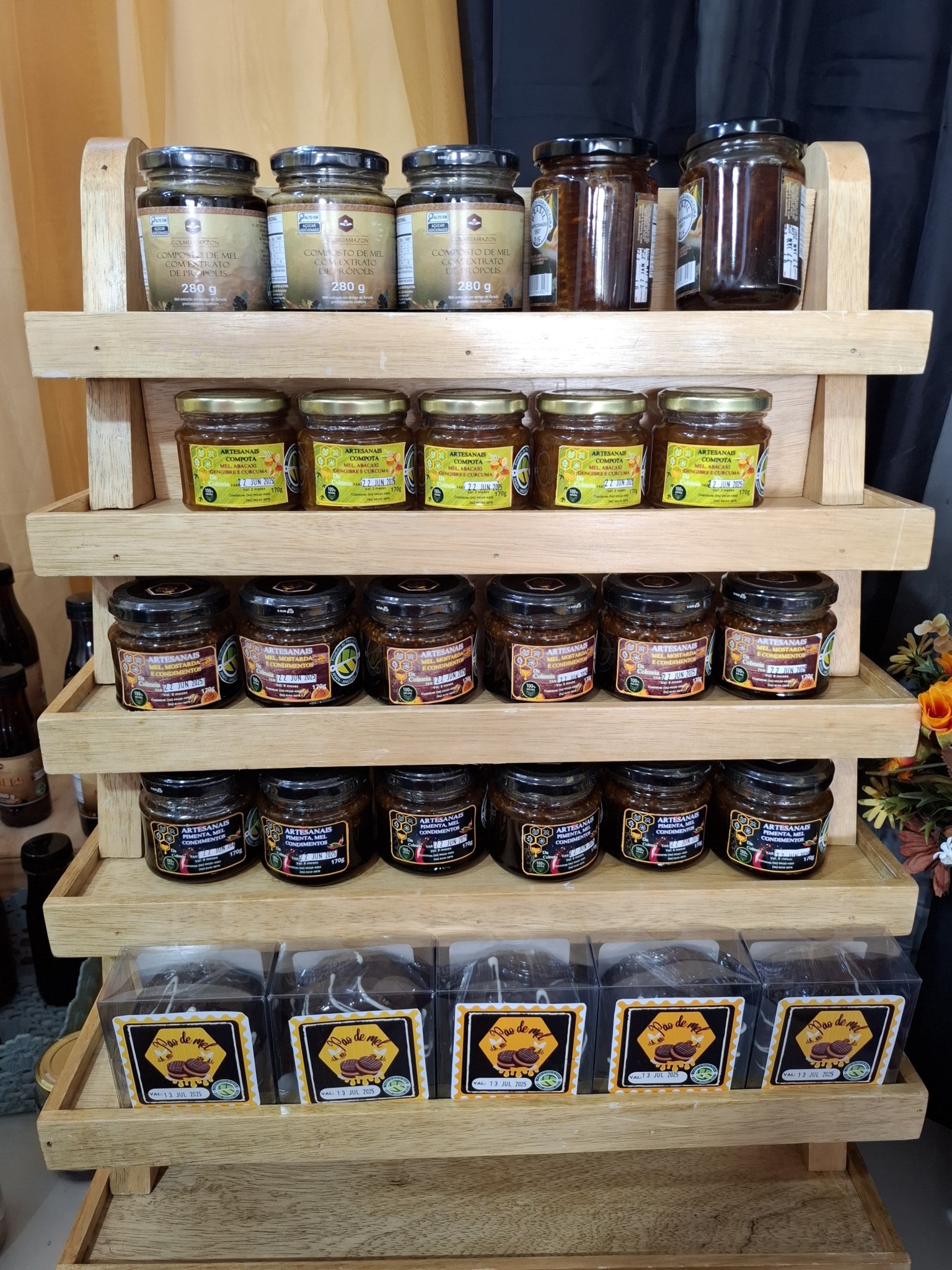 Com isso, todos os produtos são sem conservantes. O portfólio inclui o tradicional mel com própolis, um antepasto de mel com mostarda e condimentos, além de versões com pimenta e uma compota de abacaxi com gengibre, cúrcuma e mel. Assim, valoriza ingredientes regionais e os sabores amapaenses.