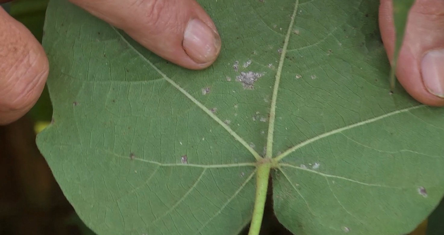 “Elas são responsáveis aí, principalmente, por desfolha na cultura do algodoeiro e para a mancha-alvo, a gente ainda tem uma agravante, porque ela também ocorre na cultura da soja, né? Enquanto que a ramulária é uma doença específica aí da cultura do algodão hoje, que a gente tem no campo, não ocorrendo na cultura da soja, mas igualmente danosa aí na cultura do algodão. Ramulária, inclusive, ela tem maior, causa maior dano do que a mancha-alvo hoje na cultura do algodão, apesar da gente estar vendo aí uma maior ocorrência da mancha-alvo nesses últimos anos, ela tem essa predominância em anos mais chuvosos, anos em que a cultura está mais fechada, que a gente não conseguiu fazer tão bem o regulador na cultura do algodão, a gente vê a mancha-alvo aí como protagonista, ainda assim a ramulária tem ocorrido, mesmo que em menor intensidade, mas com uma capacidade de dano aí é muito grande também na cultura do algodão”, Mônica Müller, pesquisadora fitopatologista da Fundação MT.