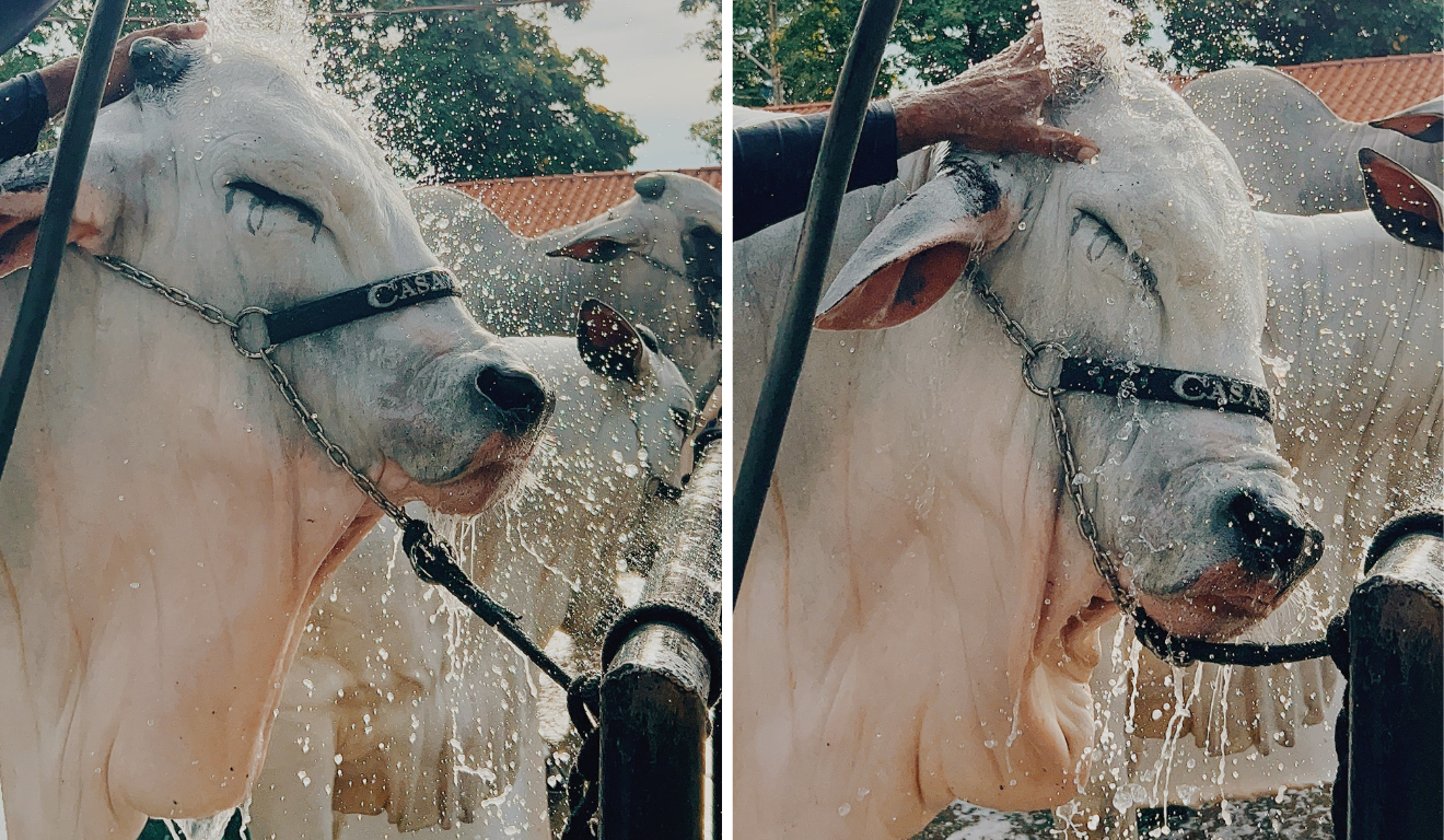 Antes de se tornar Grande Campeã da ExpoZebu 2025, Carina FIV do Kado passou por um processo detalhado de preparo, conduzido pela equipe da Casa Branca Agropastoril. Além da genética impecável, a apresentação estética contribuiu para reforçar sua imponência diante dos jurados.